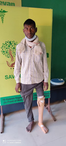 Tarak lives in a state in the northern part of India but he has a friend who lives in Jaipur. This friend knows the mission of Save Kids Trust and trusts us for his family’s health needs. He invited Tarak to come to SKT for help. After an 11-hour train ride and a visit to the clinic, SKT was able to help him get fit, and pay for, a new lower leg. Tarak has returned home to his family and is now able to walk and work.